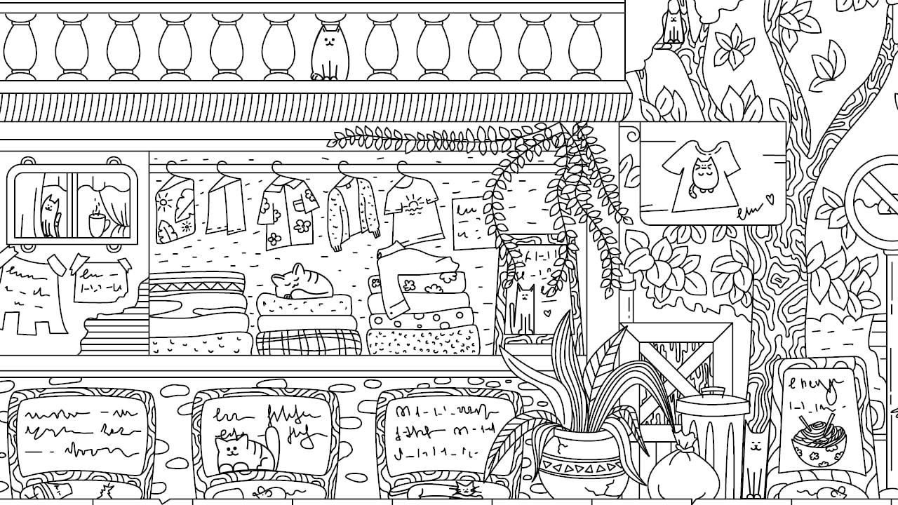 手描きの背景の中で、100匹の猫たちがあなたの発見を待っています。 ローファイサウンドトラックでリラックスしてください。