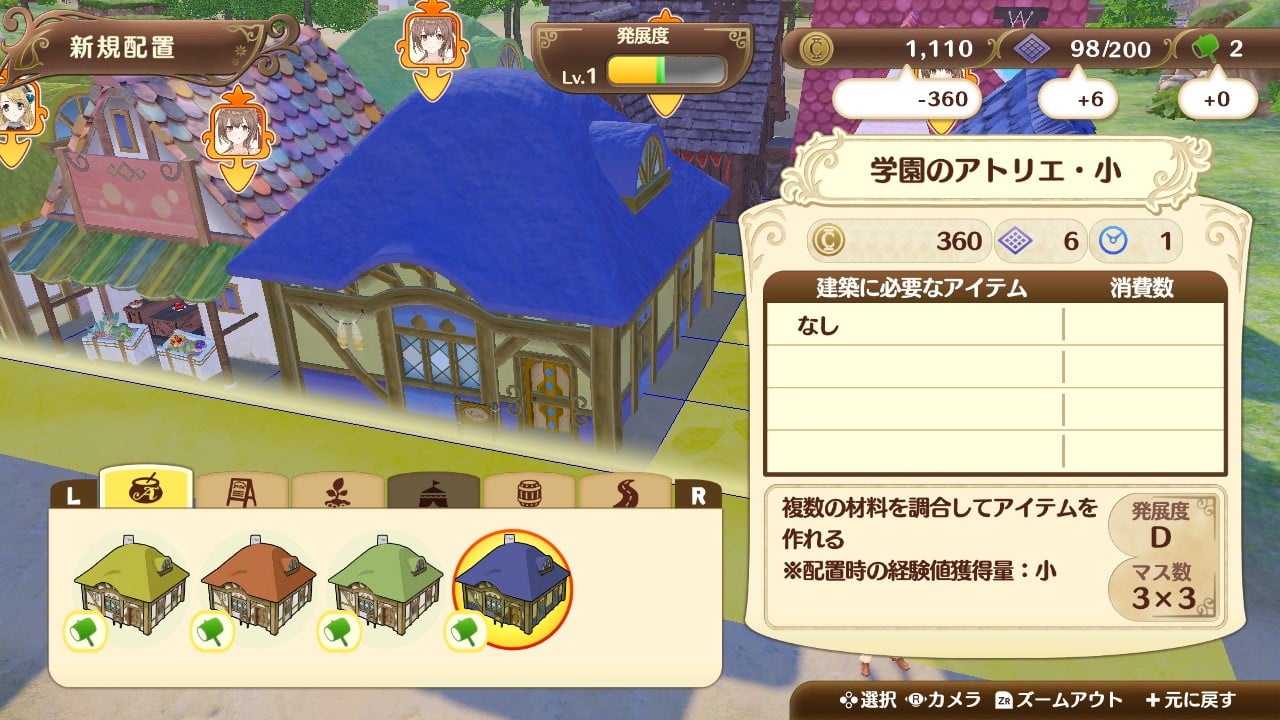 街に建築できるショップ、アトリエの見た目としてマナケミアシリーズをイメージした施設を選べるようになります。